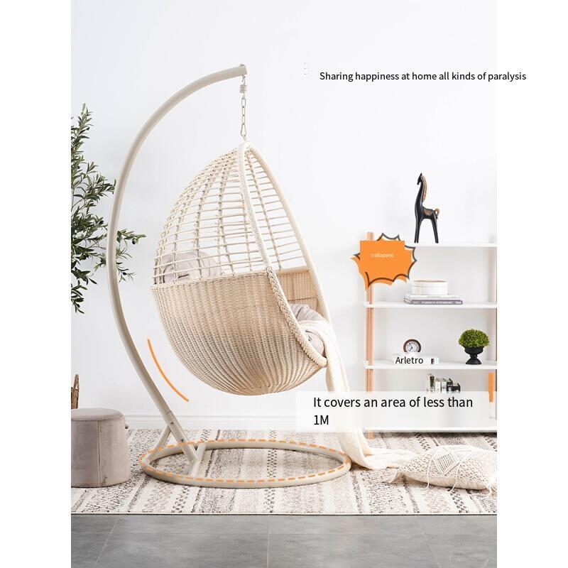 Hanging Basket Rattan Chair Single Swing Household Lazy Hammock Indoor Balcony Leisure Rocking Chair Bird's Nest Hanging Chair Bamboo Basket White