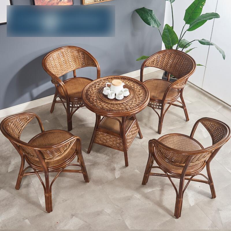 Single Weaving Chair Living Room Teng Chair Tea Table Elderly Leisure Armchair Balcony Small Table And Chair Combination (honey Color)