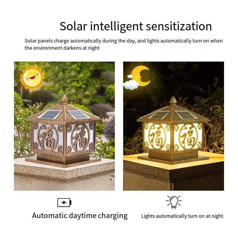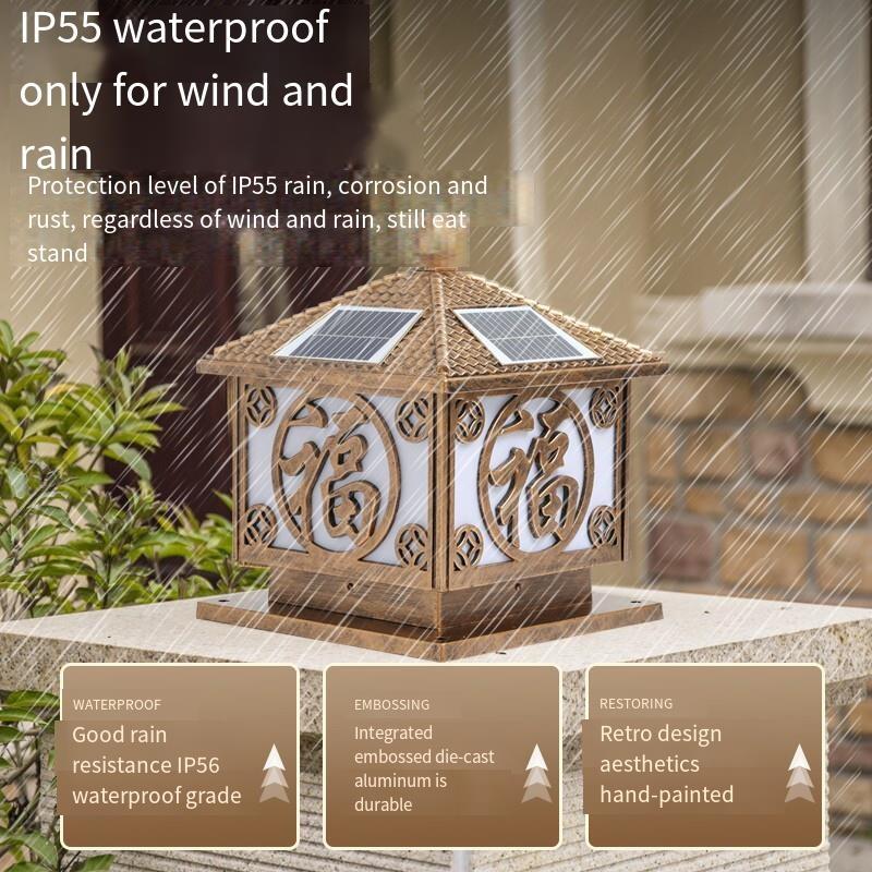 Solar Column Head Lamp Courtyard Lamp Outdoor Lighting Wall Lamp Door Column Lamp Waterproof Outdoor Lamp European Garden Villa Gate Column Lamp