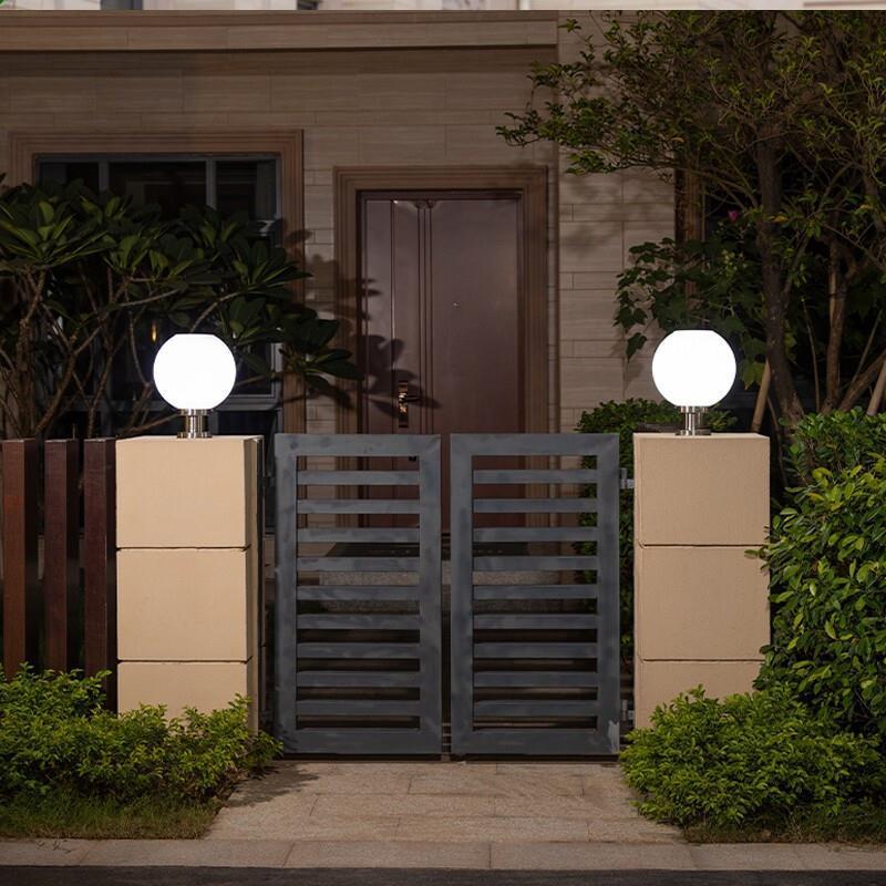 Solar Column Head Lamp LED Outdoor Wall Lamp Gate Courtyard Wall Lamp Waterproof Garden Villa Courtyard Lamp Household Ball Lamp Municipal White Light