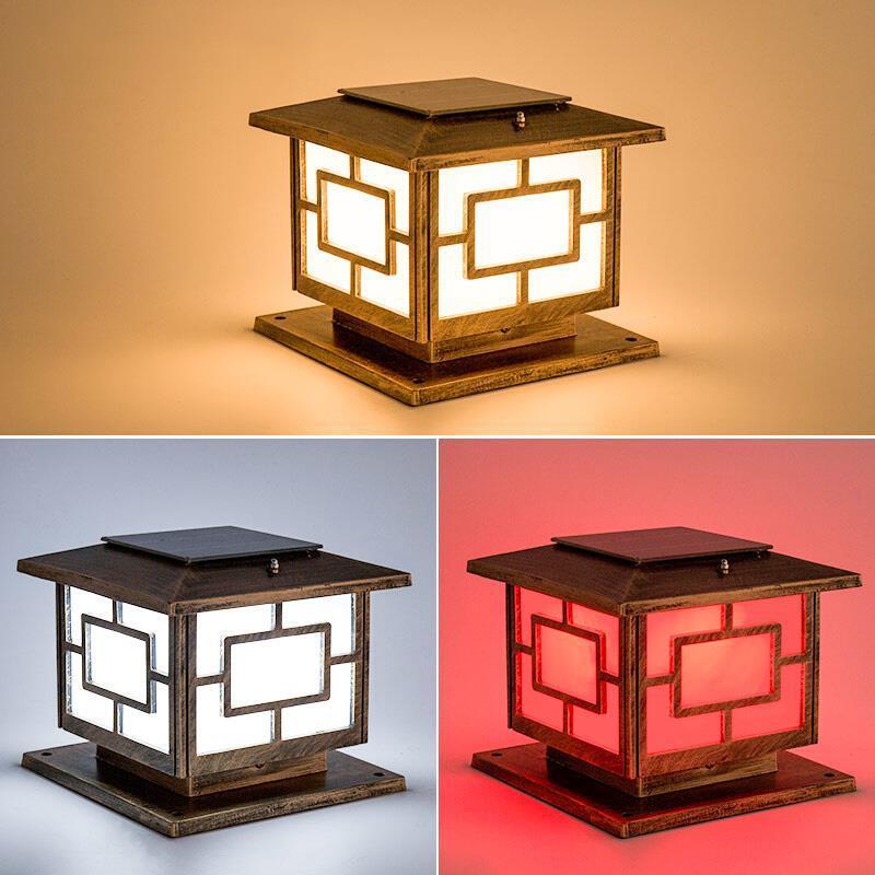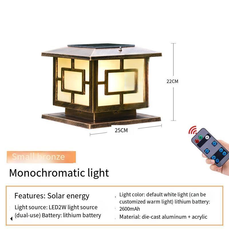 Solar Column Head Lamp Outdoor Waterproof Household Lamp Inductive Courtyard LED Lamp Chinese Villa Column Lamp Decorative Fence Courtyard Lamp