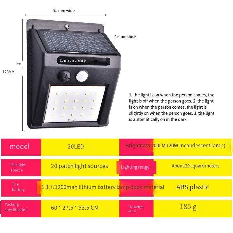 Solar Lamp Household Courtyard Lamp New Rural Wall Lamp Outdoor Waterproof Lightning Protection Super Bright Led Human Body Induction Street Lamp