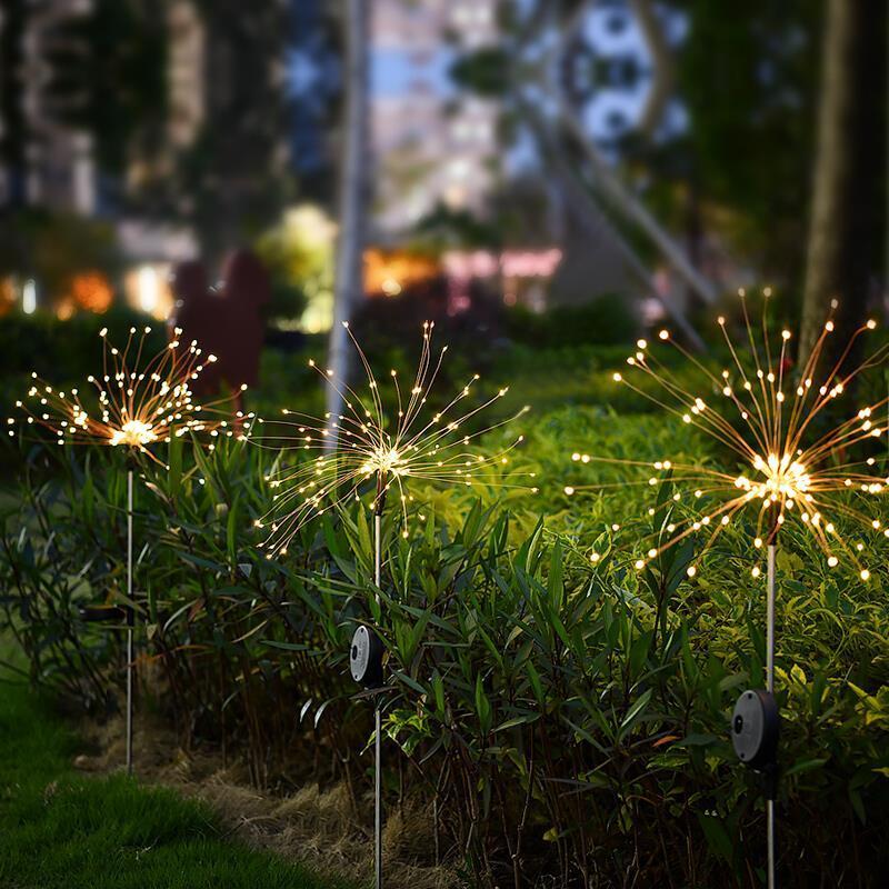 Solar Lamp Lawn Lamp Outdoor Courtyard Lamp Colorful Landscape Lamp Dandelion Villa Decorative Lamp Household Garden Fireworks Lamp 2 Sets