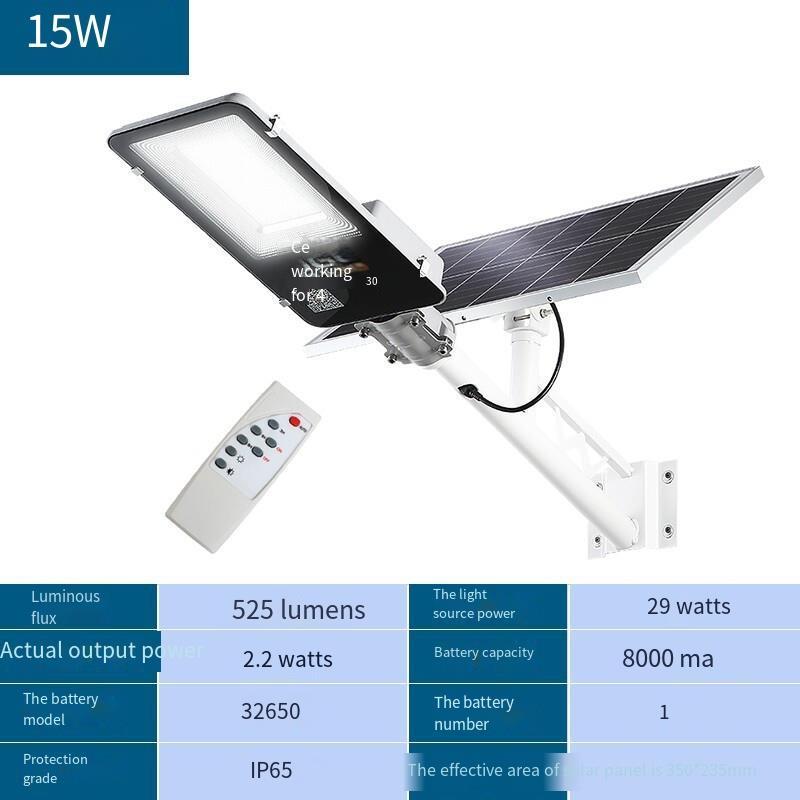Lamp cap * 1, solar photovoltaic panel * 1, cantilever * 1, screw accessories package * 1, lamp pole holding piece * 1, remote controller * 1, Allen screwdriver * 1, installation manual * 1, remote control battery * 1 pair, solar panel support * 1