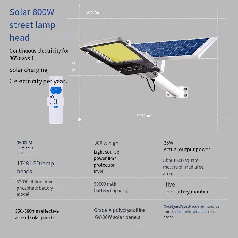Solar Lamp Outdoor Street Lamp Household Outdoor High Power 1200W High Brightness Projection Lamp New Rural Courtyard Lamp Road Engineering Lamp