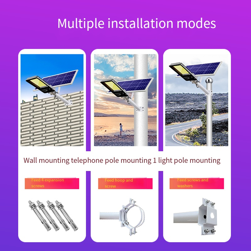 Lamp + solar panel + installation accessories + manual + remote control