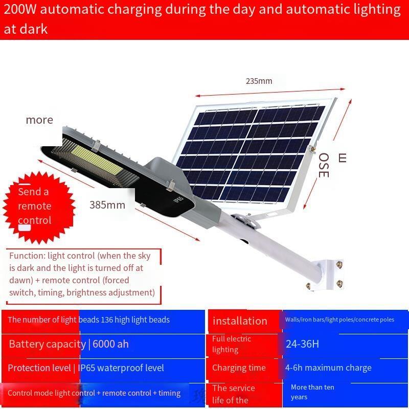 Solar Lamp Street Lamp Solar Outdoor Courtyard Street Lamp Household Super Bright Project High-power Induction Lamp New Rural Waterproof LED 200w