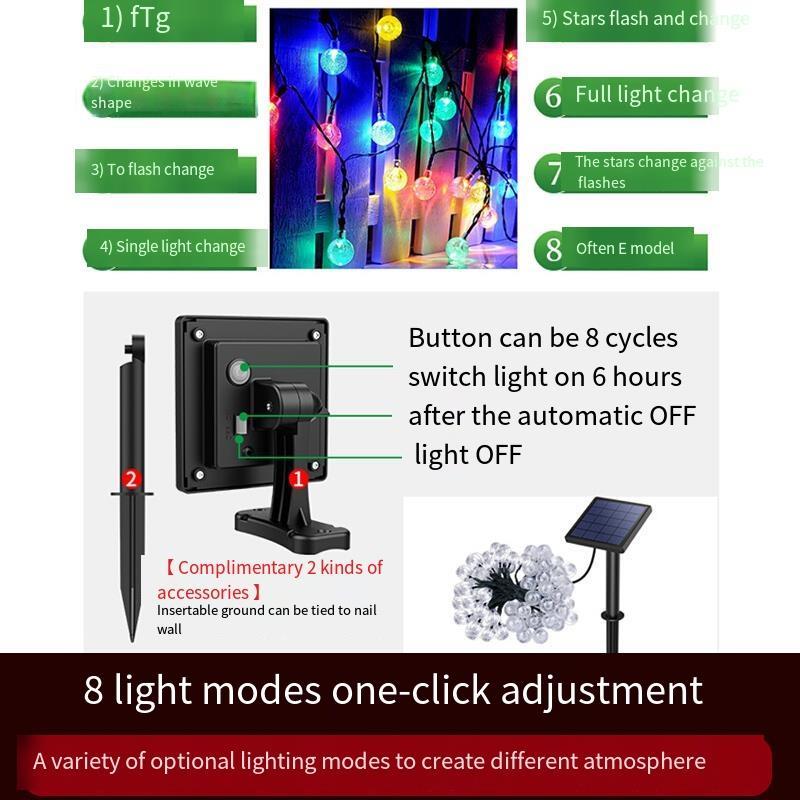 Solar Lamp String Colorful Lamp Flashing Lamp Outdoor Courtyard Atmosphere Decorative Lamp Waterproof LED Lamp Villa Garden Landscape Night Lamp