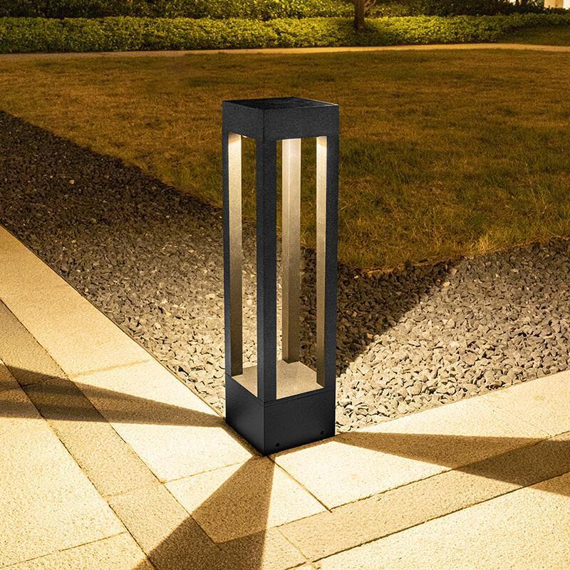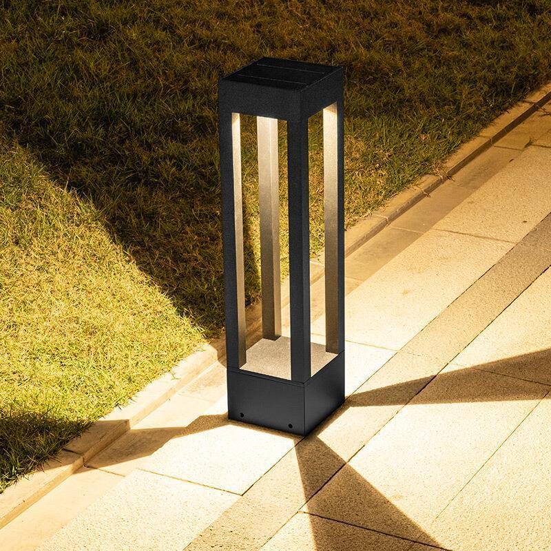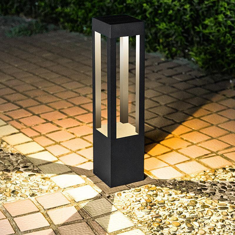 Solar Lawn Lamp Outdoor LED Garden Lamp Simple Modern Garden Landscape Lamp Outdoor Waterproof Courtyard Lamp 300 High Sand Black + Warm Light