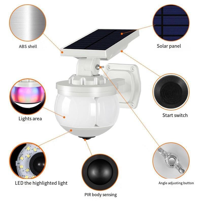 Solar Outdoor Villa Balcony Color Lamp Super Bright Waterproof Human Body Induction Courtyard Lamp Household Simulation Monitoring Light Street Lamp
