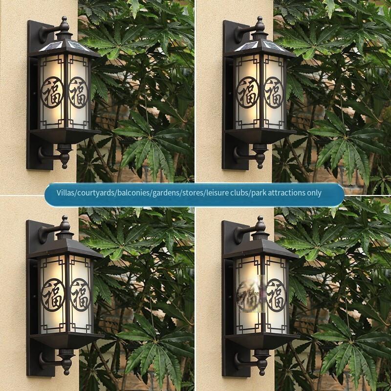 Solar Wall Lamp Household Outdoor Waterproof Courtyard Lamp New Chinese Outdoor Corridor Villa Door Induction LED Lamp Solar Warm Light