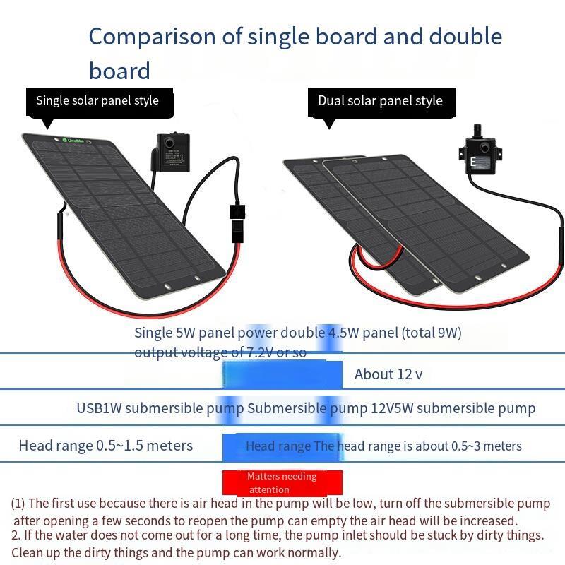 Solar Water Pump Fountain Circulating Filter Fish Tank Wave Making Soilless Cultivation Running Water Garden Double 5w Plate String + 12v Pumping Pipe 3m + Filter