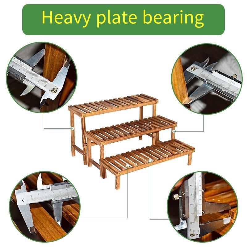 Solid Wood Flower Rack Flower Stool Living Room Flower Pot Simple Modern Balcony Wooden Ladder Meat Green Basket Plant Combination Carbonization Ladder 58cm Large Medium And Small Combination