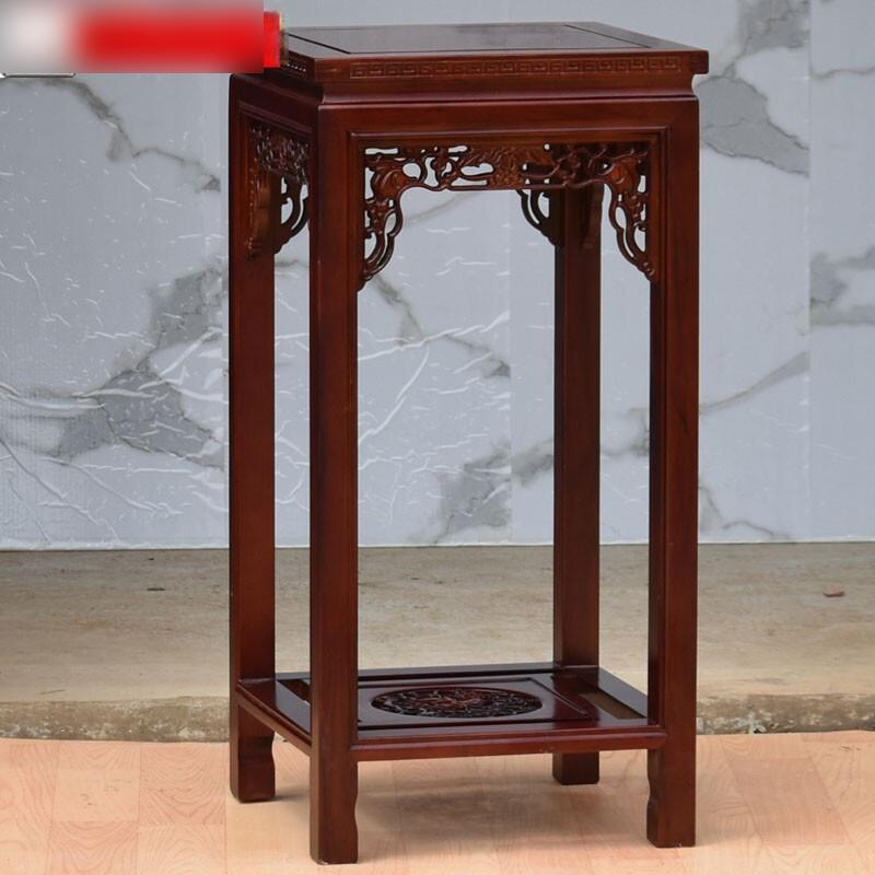 Solid Wood Square Flower Rack Indoor Log Antique Hanging Orchid Wooden Green Rose Living Room Multi-storey Chinese Single Wooden Flower Pot Shelf Vase Rack Flower Table Full Set Red 40 * 40 High 80cm