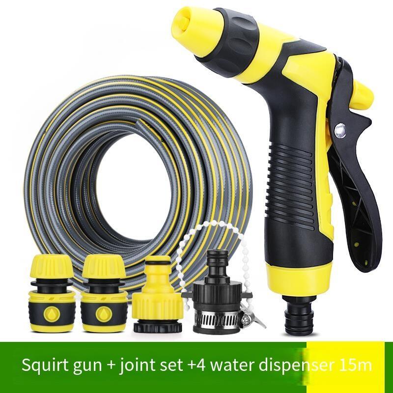 Spray Gun High Pressure Shower Car Wash Watering Pipe Watering Nozzle Vegetable Water Garden High Pressure Sprinkler Head Household Car Washing Machine Watering Tool 15 Meters 4 Points Set (WaterGun + Water Pipe + Joint)