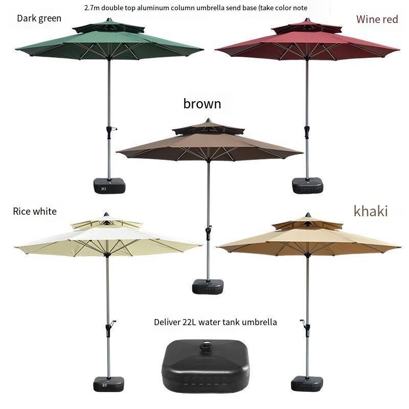 Sun Umbrella Outdoor Straight Pole Central Column Sunshade Courtyard Leisure Beach Hand 2.7m Iron Pole To Ordinary Wine Red (with Umbrella Seat)