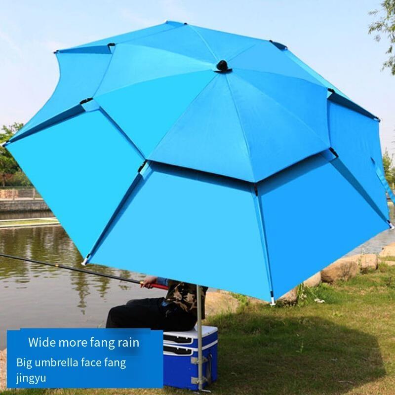 Large Fishing Umbrella 2.6m 2.4 Universal Rain Proof Sunscreen Outdoor Fishing Umbrella Folding Thickened Blue Double-layer Reinforced Buckle Frame Black Glue Sunscreen
