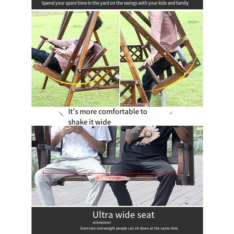 Swing Chair Outdoor Solid Wood Courtyard Rocking Hanging Basket Balcony Anti-corrosion Wood Double Hammock With Ceiling Luxury