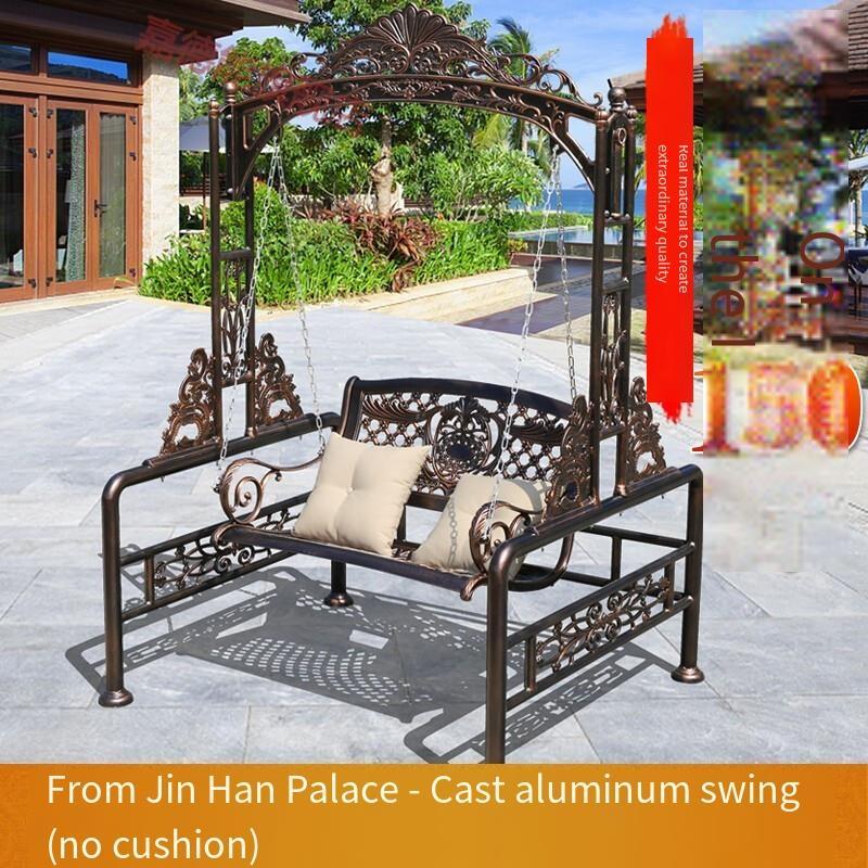 Swing Outdoor Courtyard Garden Cast Aluminum Double Rocking Villa Waterproof Leisure Basket Hanging Household Swing Buckingham Palace - All Cast Aluminum Swing (no Cushion, Including Two Pillows)