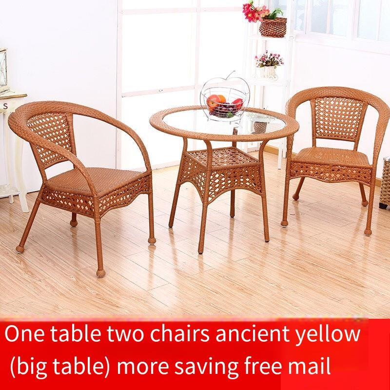 Outdoor Table Chair Rattan Chair Three Piece Set Household Fashion Tea Table Combination Office Courtyard Chair Ancient Yellow Single Chair