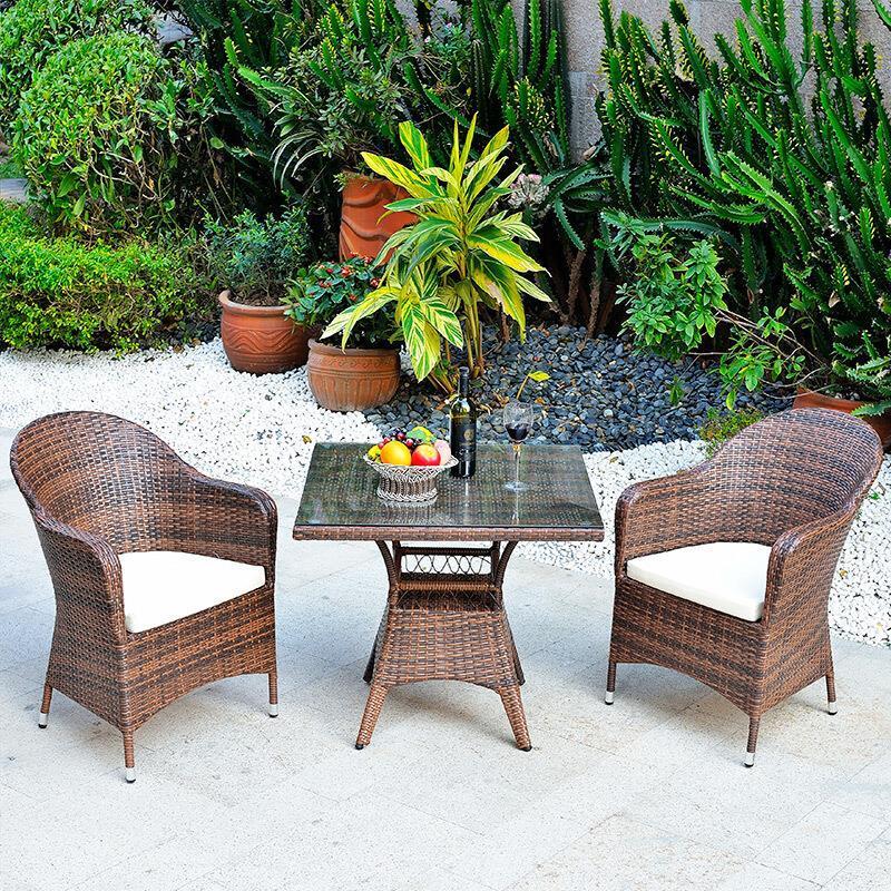 Outdoor Tables And Chairs Rattan Chair Leisure Courtyard Balcony Three Piece Rattan Furniture One Table Two Chairs Including Cushion Formula Table