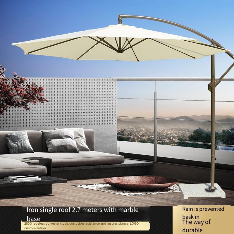 Umbrella Outdoor Courtyard Sunshade Large Sun Advertising Stall Beach Activity Umbrella Off White Iron Single Top 2.7m With 70 Catty Marble Base