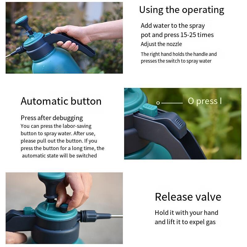 1.High quality PP+PVC plastic, durable, adjustable sprinkler, adjustable spray size2. Hand pressure type design, gently press, you can spray water, watering flowers watering grass, cleaning housework are easy to use